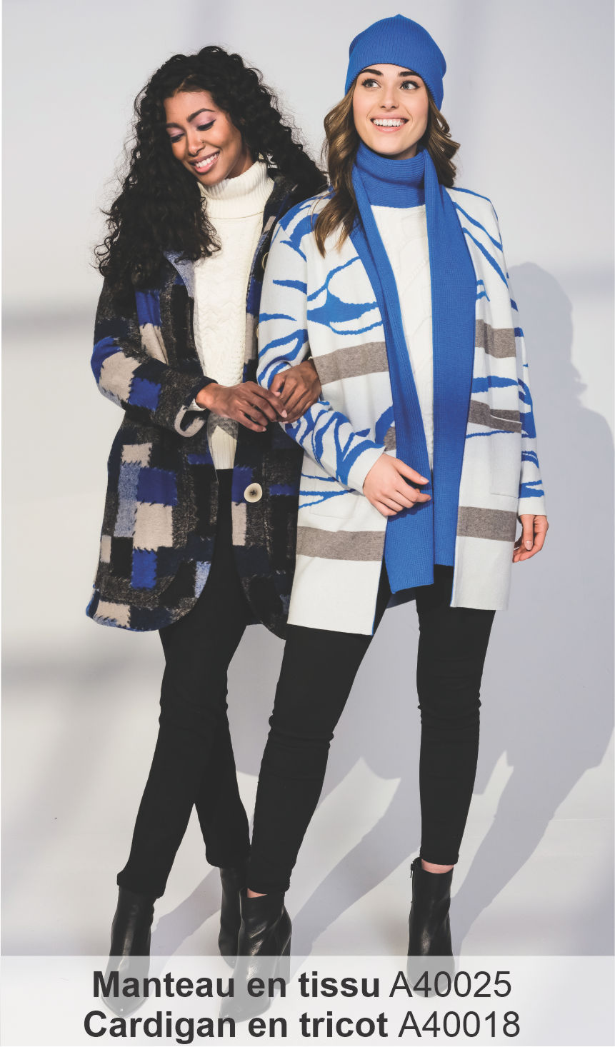 - Deux vêtements d’extérieur luxueux, parfaits pour vous accompagner du bureau aux événements, avec chaleur et aisance.