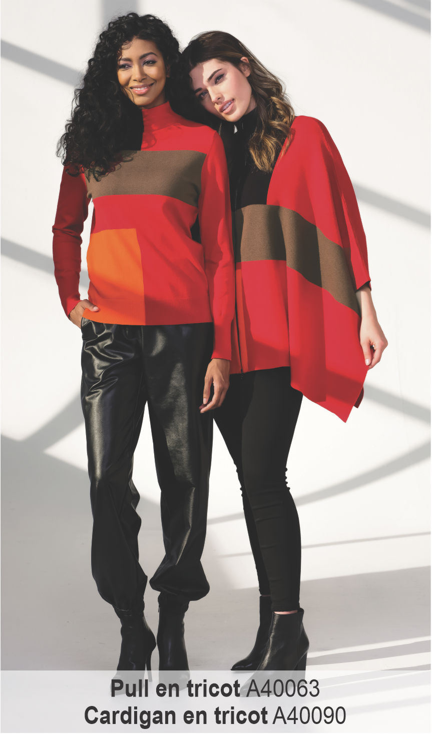 - Un rouge éclatant associé à un brun chocolaté et un orange chauds créent une merveilleuse combinaison. Nous avons tellement aimé ce mélange de couleurs que nous en avons fait un pull et une cape!