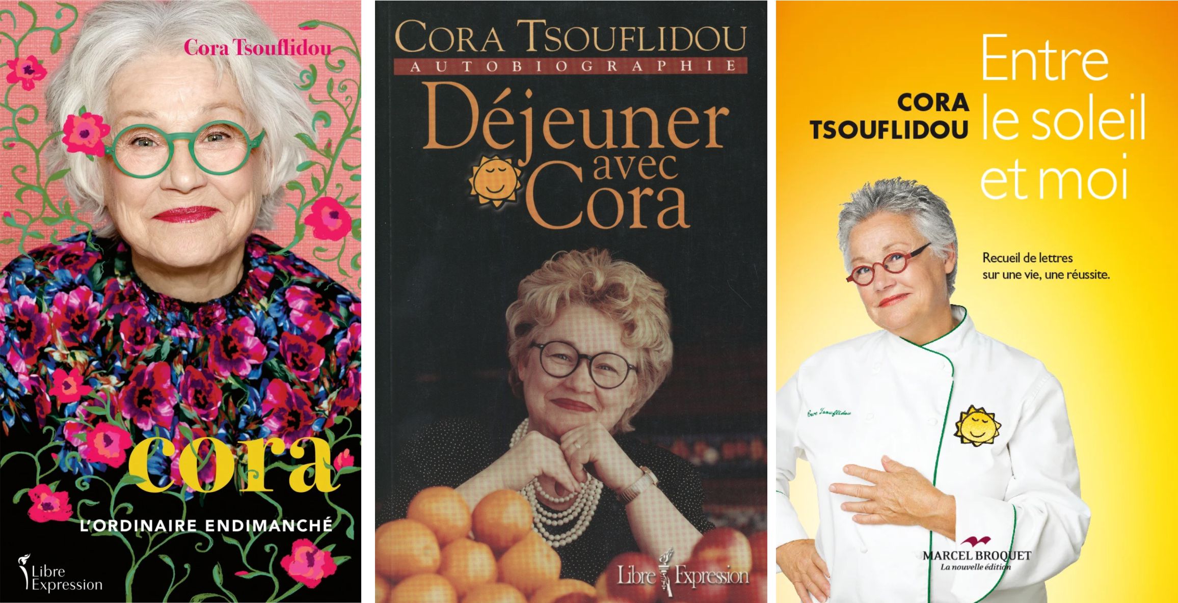 D’ailleurs, outre Cora : l’ordinaire endimanché, Cora Tsouflidou a écrit Déjeuner avec: Cora (2001) et Entre le soleil et moi (2011) qui sont des autobiographies.