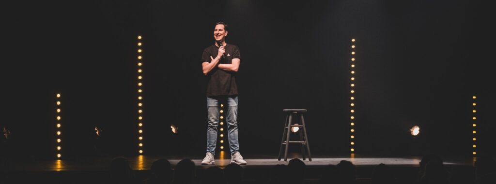 « Avec Vulnérable, je fais une petite référence à mon premier spectacle, mais ensuite, j’aborde plusieurs sujets, entre autres la dynamique que j’ai avec ma famille. C’est un bon show pour me découvrir, je dirais qu’il est plus intime, plus sincère. Je parle notamment de mon anxiété, et je me rends compte que ça rejoint beaucoup de monde. Il y a des gens qui prennent le temps de m’écrire ou qui viennent me voir après le spectacle pour me remercier de parler de ce sujet. Ce sont souvent des hommes qui me disent que j’ai mis des mots qui expliquent bien comment ils se sentent, et qui ajoutent qu’ils vont aller consulter. C’est touchant, ça me rend heureux si je réussis à avoir un impact auprès des personnes. J’ai lâché l’ostéopathie en espérant, avec mon humour, contribuer au bien-être des gens, et mon spectacle résonne plus que je ne l’avais espéré auprès du public. Je suis bien content de tout ça. »