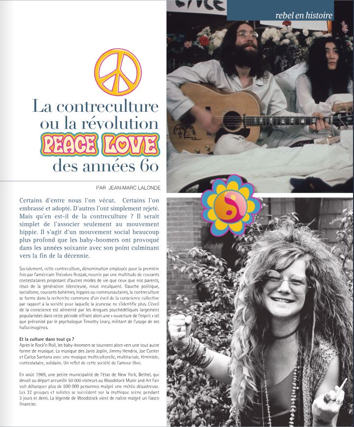 Certains d’entre nous l’on vécut. Certains l’on embrassé et adopté. D’autres l’ont simplement rejeté. Mais qu’en est-il de la contreculture ? Il serait simplet de l’associer seulement au mouvement hippie. Il s’agit d’un mouvement social beaucoup plus profond que les baby-boomers ont provoqué dans les années soixante avec son point culminant vers la fin de la décennie.