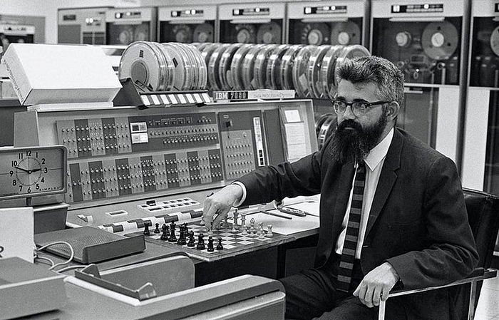 C’est en 1956 qu’un informaticien de génie du nom de John McCarthy, accompagné du scientiste Marvin Minsky se penchent sur un principe d’étalage alpha bêta, algorithme très utilisé dans les programmes d’échec qui en fait analyse différentes options et choisi la meilleure, qui deviendra alors la base de l’IA. En 1962, il crée un laboratoire d’intelligence artificielle et participe à la création de l’infonuagique (cloud computing). Les fondements de l’IA et de la technologie moderne viennent d’être placés.