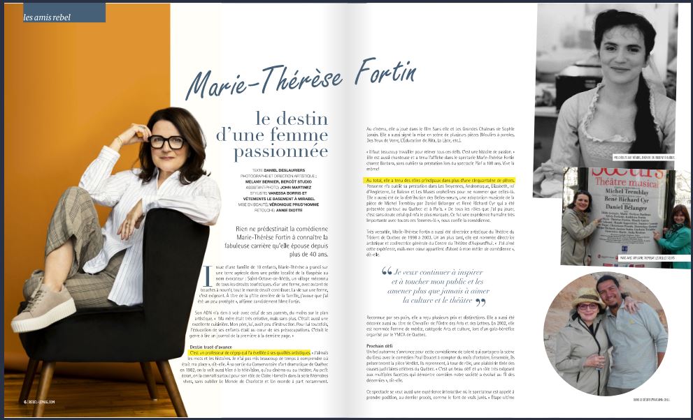 Rien ne prédestinait la comédienne Marie-Thérèse Fortin à connaître la fabuleuse carrière qu’elle épouse depuis plus de 40 ans.