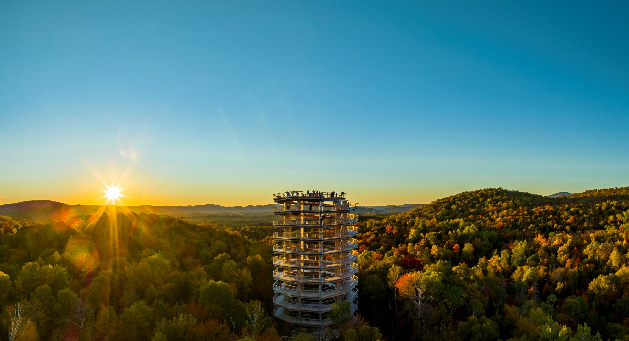 Et si le plein air pouvait rimer avec douceur, beauté et accessibilité? Niché au cœur des Laurentides, à seulement 15 minutes de Tremblant, le Sentier des cimes vous propose une expérience hors du commun : une promenade à la cime des arbres, entre ciel et forêt, sur un parcours entièrement sécuritaire, aménagé pour accueillir tout le monde — de la poussette au fauteuil roulant. Le parcours n’est pas une simple randonnée, c’est un moment de reconnexion avec la nature… et avec soi-même. Le sentier de près de trois kilomètres aller-retour, en bois, serpente à travers la forêt avant de vous mener à une tour panoramique de 40 mètres de haut. Une ascension en spirale tout en douceur, sans effort, mais avec un effet wow garanti. Du sommet, la vue s’ouvre sur une mer de verdure et de montagnes.