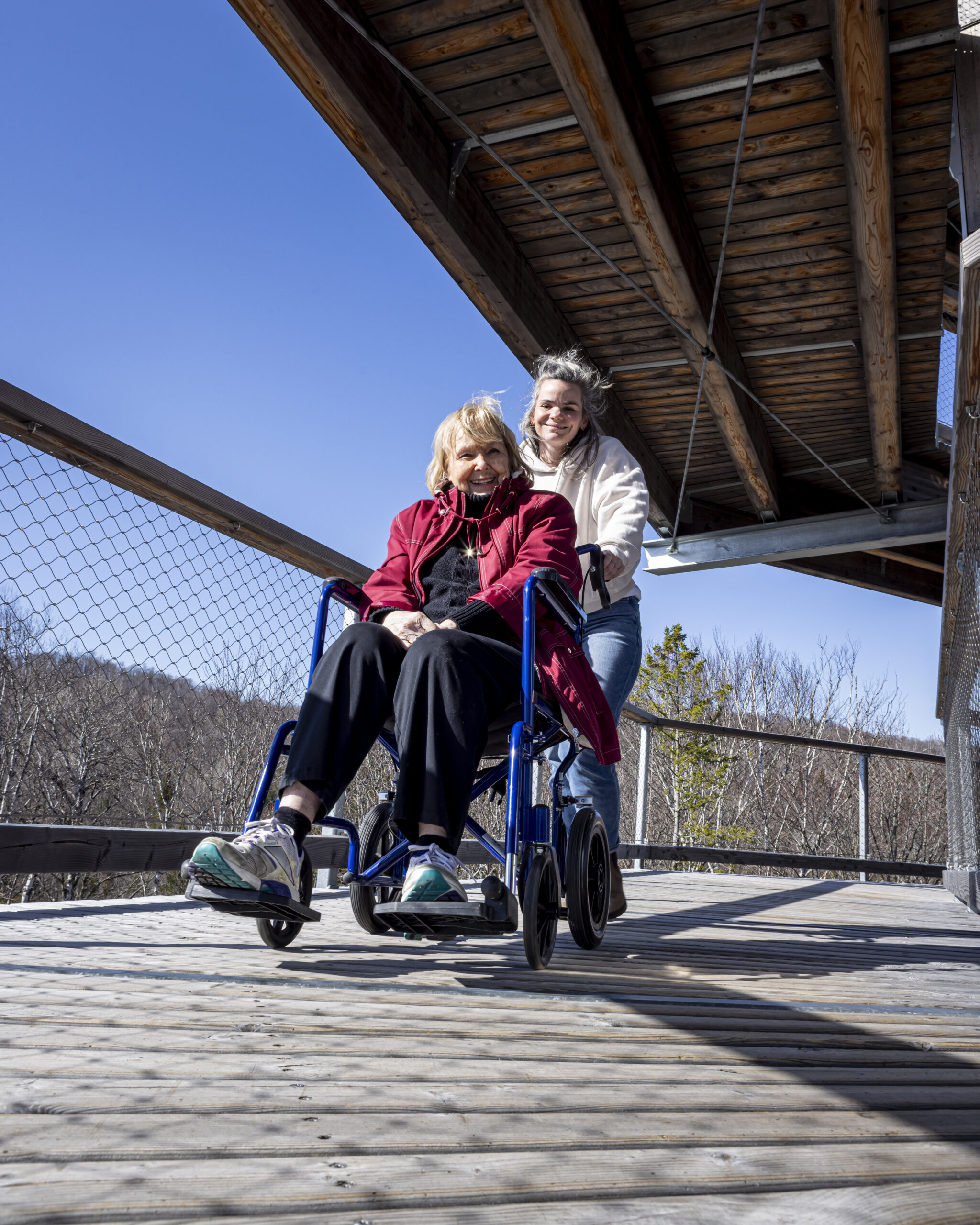 Et si le plein air pouvait rimer avec douceur, beauté et accessibilité? Niché au cœur des Laurentides, à seulement 15 minutes de Tremblant, le Sentier des cimes vous propose une expérience hors du commun : une promenade à la cime des arbres, entre ciel et forêt, sur un parcours entièrement sécuritaire, aménagé pour accueillir tout le monde — de la poussette au fauteuil roulant. Le parcours n’est pas une simple randonnée, c’est un moment de reconnexion avec la nature… et avec soi-même. Le sentier de près de trois kilomètres aller-retour, en bois, serpente à travers la forêt avant de vous mener à une tour panoramique de 40 mètres de haut. Une ascension en spirale tout en douceur, sans effort, mais avec un effet wow garanti. Du sommet, la vue s’ouvre sur une mer de verdure et de montagnes.