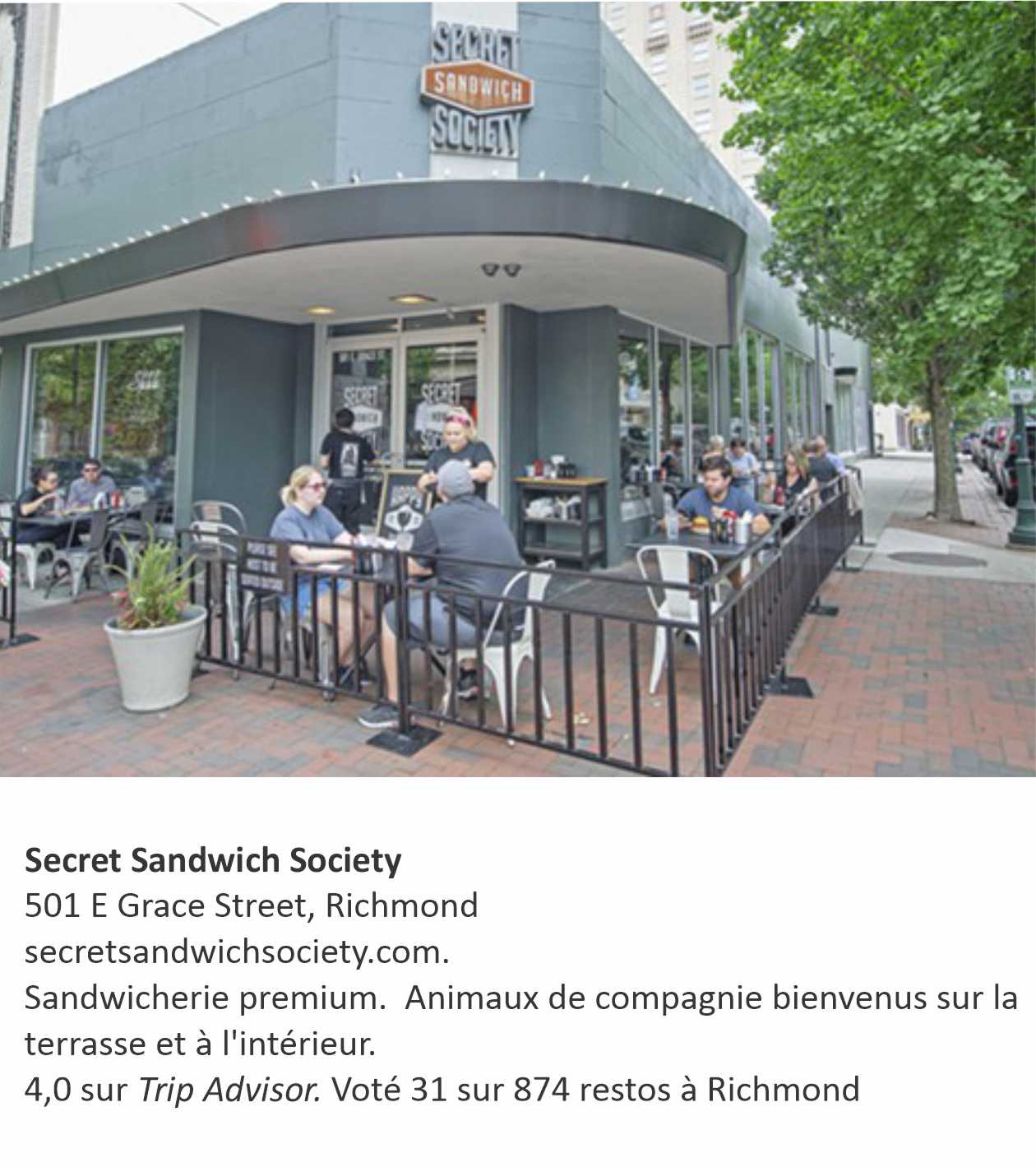 En transit dans la capitale de l’état de Virginie, nous avons vite compris que cette ville et ses accueillants habitants chérissent nos joyeuses petites bêtes : les chiens sont les bienvenus dans 11 des 19 hôtels du Downtown ! Ils sont accueillis sur toutes les terrasses des restos et même à l’intérieur de nombreux établissements. Un paradis des accompagnateurs canins.