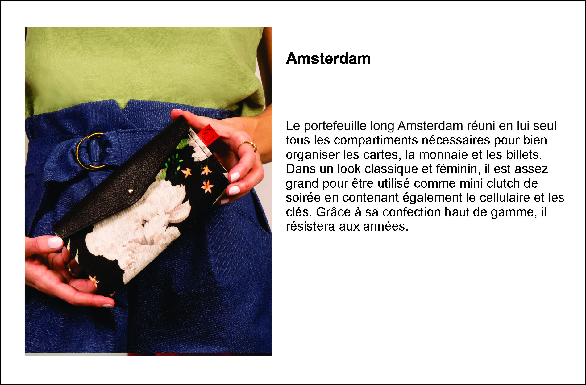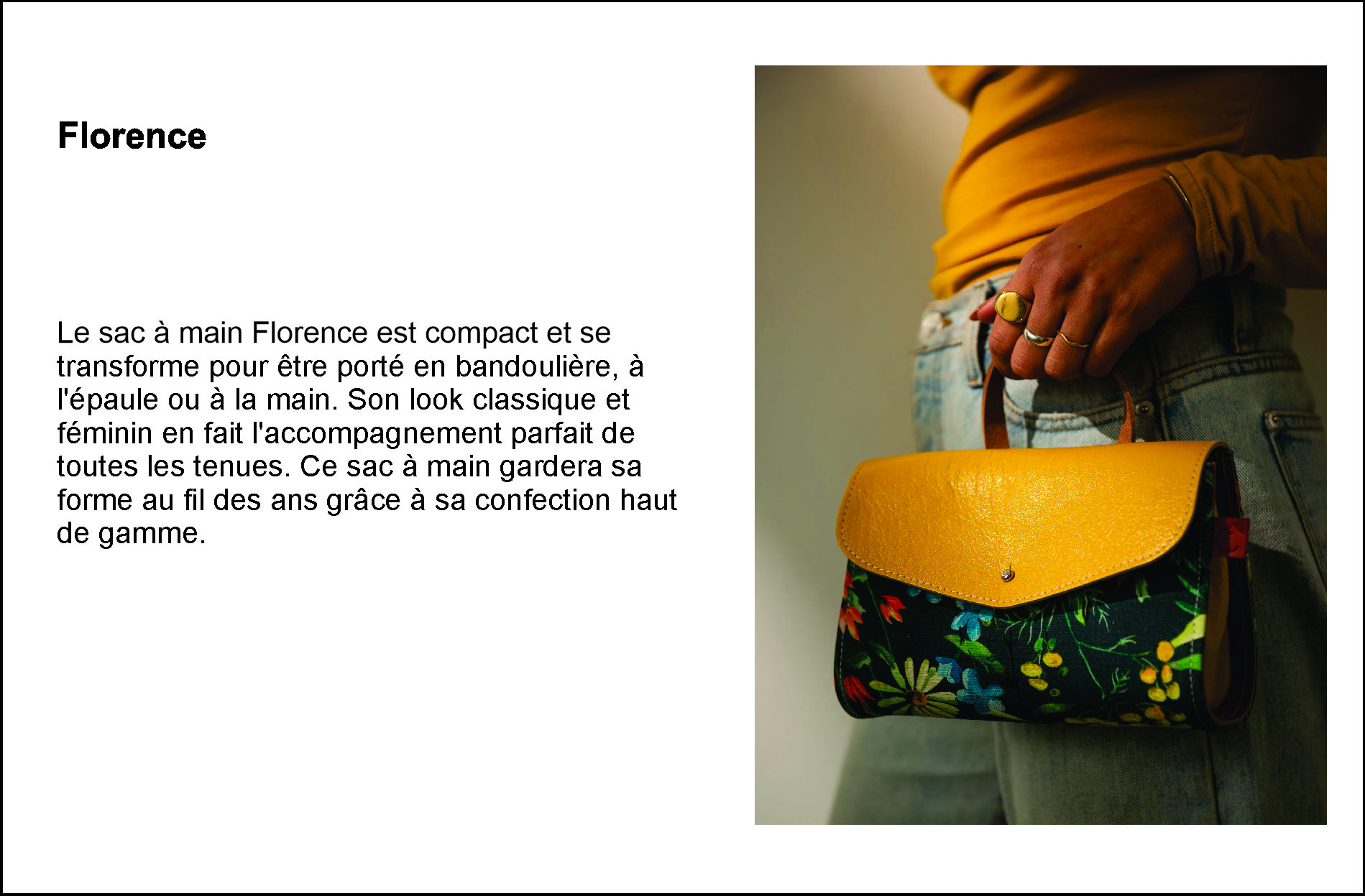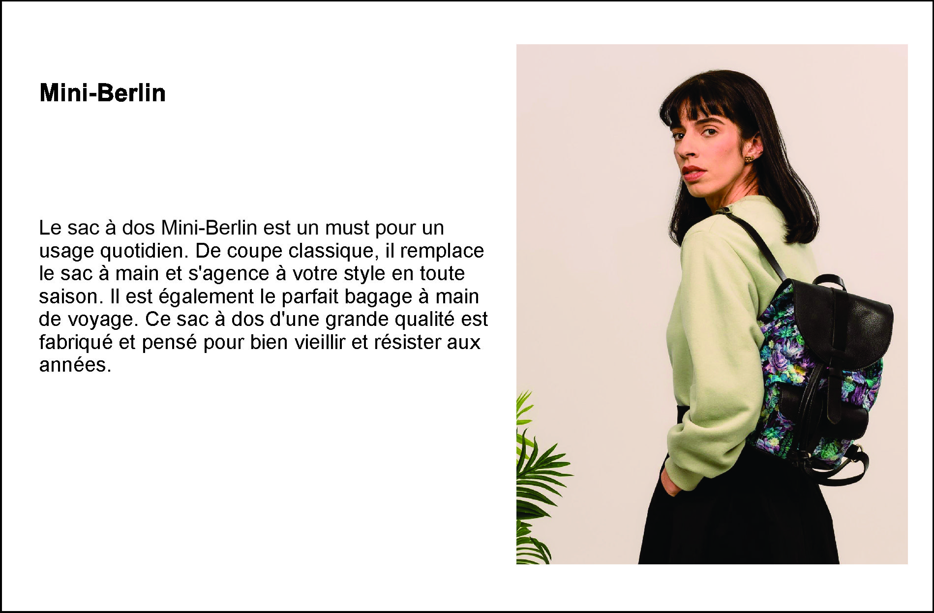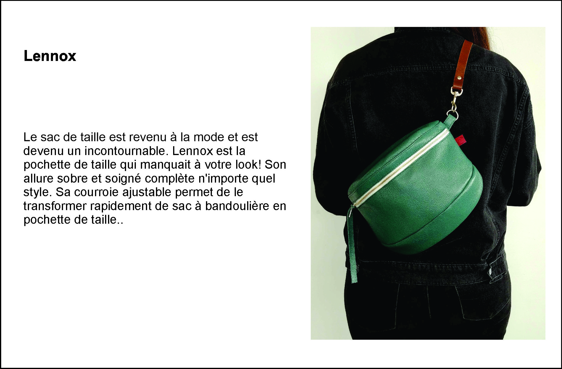 Au fil du temps, les valeurs personnelles de la fondatrice se sont intégrées au modèle d’affaire. Le «slow fashion», littéralement «mode lente», s’est imposé naturellement. La qualité des matériaux et le soin apporté à la fabrication sont une priorité et font de chaque article un accessoire exceptionnel.