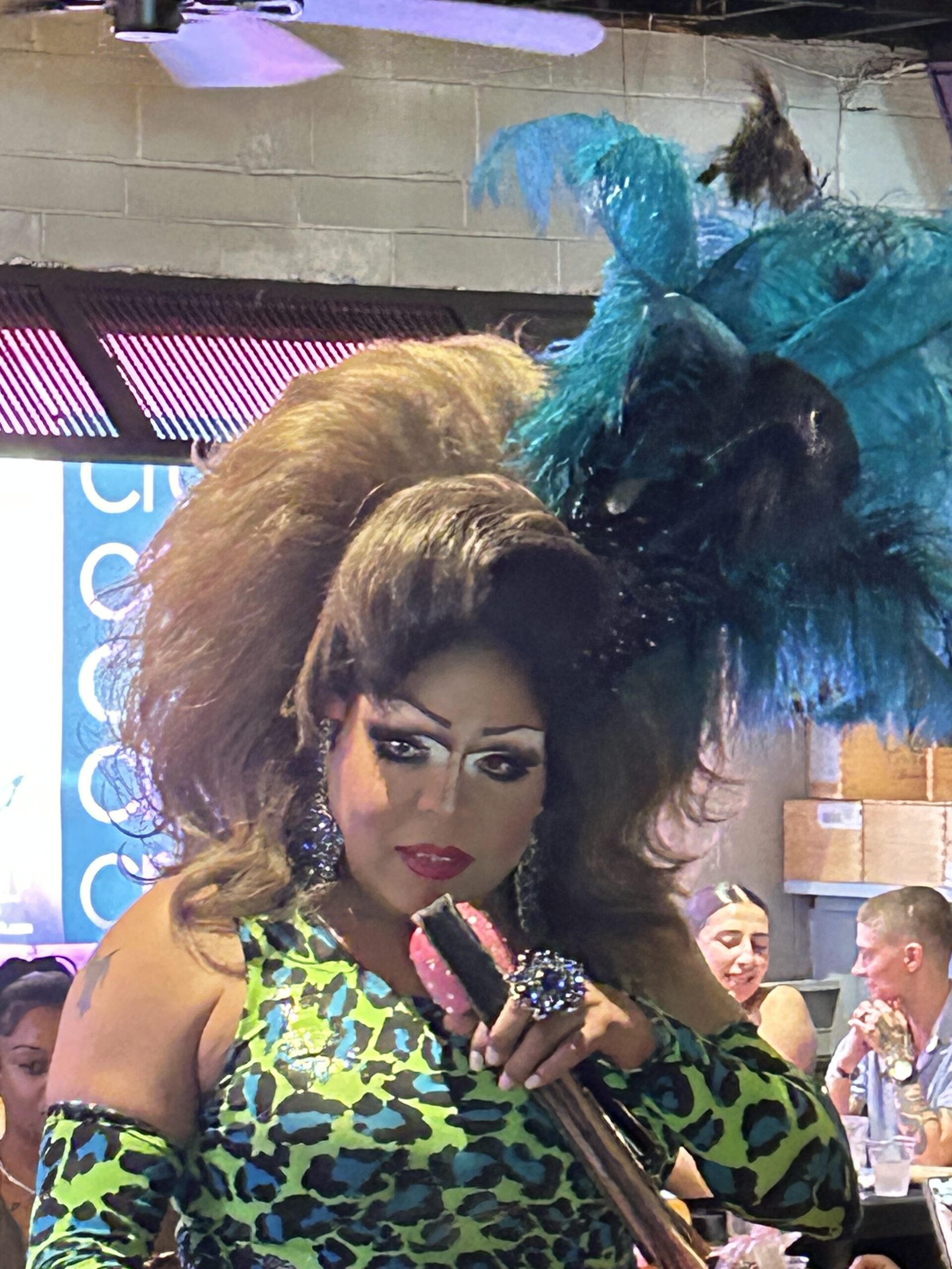 Tout d’abord, comme le mentionne d’emblée l’animateur maison : « laissez vos préjugés à la porte ! » Vous allez assister à un gros party, bien rodé qui n’a qu’un but : Fun! Fun! Fun! Tout au long du brunch qui dure environ 2 heures, les drags Sandra Lopez et ses acolytes vont vous amener ailleurs en lips sync, en animation et même en twerking. Dans le feu de l’action, elles invitent des spectatrices à se laisser aller, à prendre la place et se branler le popotin comme s’il n’y avait pas de lendemain. L’effet est instantané : le feu prend dans la place! Un nuage de 1 $ se met alors à voler au-dessus des performers amateurs, ce qui ne fait qu’amplifier les cris de l’audience qui prennent alors quelques décibels de plus et ajoutent à l’euphorie. Préparez vos billets de 1 $ – les Américains ont encore le un dollar en papier – pour contribuer au spectacle. Les divas en talons voguent d’un dollar à l’autre.