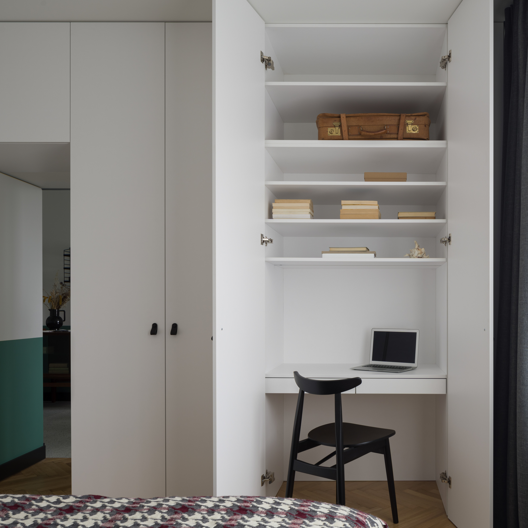 • Une penderie ou garde-robe convertie en espace de bureau pourra être fermée après le travail.